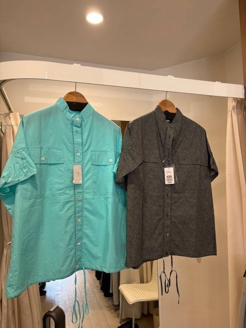 初夏からも活躍しそうな半袖シャツは裾を絞ってバルーン風にも着用出来る一枚¥15000税抜きIKITUKE