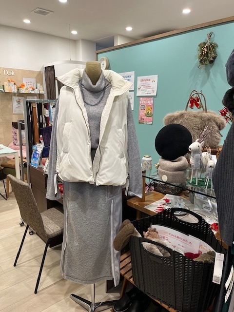 イタリー製ダウンベスト¥18000 ミラン スカート¥17800ローブ