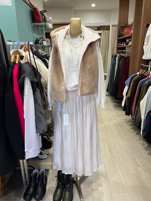 師走に向けてお出かけにキレイ目プルオーバーに光沢のあるギャザースカートで♡リバーシブルベストでカジュアルに(⌒∇⌒)プルオーバー¥19000スカート¥18000税抜きLOUNIE