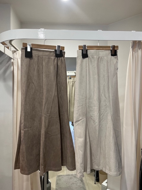 今年人気のスエードタッチのスカートはダンボールニットやカジュアルにコーデがお勧めです!ウェストゴムで座敷忘年会にも最適(笑)¥11800税抜きCCクロス